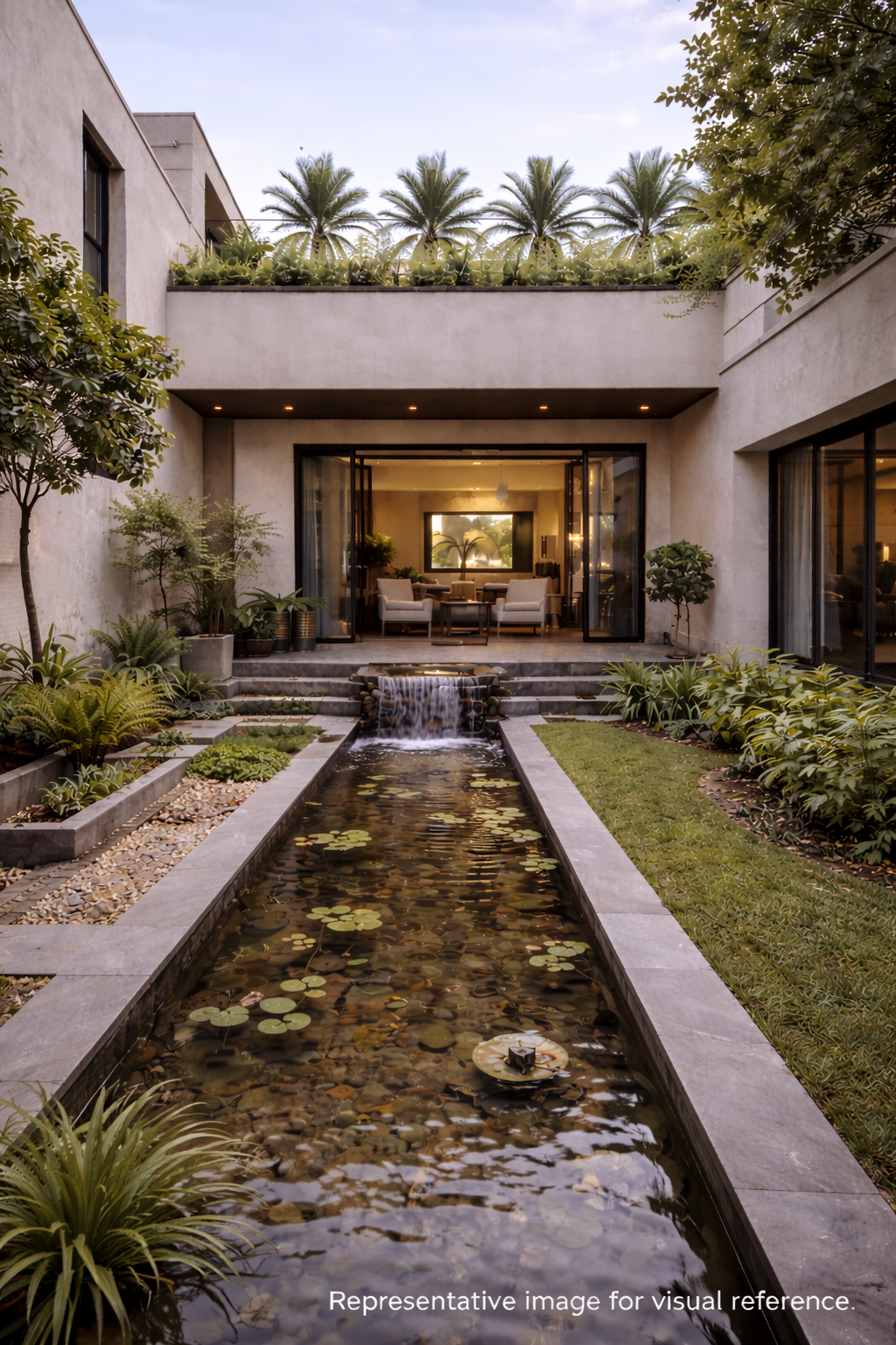 This thoughtfully designed 1 kanal independent house offers a perfect blend of space, natural light, and long-term construction quality. The home features 5 spacious bedrooms, a double-height lounge, an open kitchen with a large dining area, and a central open courtyard with a landscaped garden and waterfall.